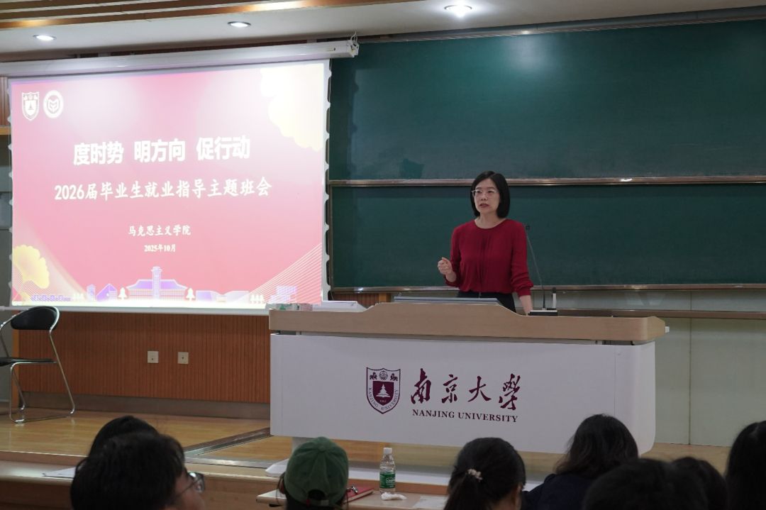 为进一步助力2026届毕业生从容应对就业挑战、把握发展趋势、调适就业心态、明晰职业方向,探花视频 于2025年10月11日举办了以“度时势 明方向 促行动”为主题的就业指导主题班会。本次班会由探花视频党委副书记夏娟老师、研究生辅导员刘晶月老师共同主讲,探花视频党委书记时昱老师莅临指导,2026届全体本硕博毕业生积极参与。